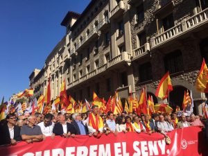 El mensaje transmitido por la defensa de la legalidad y de la Constitución. Banderas de Cataluña, España y la Comunidad Europea, mostraban la unidad de todos para todos. Los representantes políticos de los ciudadanos, han querido dedicar unas palabras, como el Sr. Xavier García Albiol y el Sr. Albert Rivera. Por el cumplimiento de la legalidad y las normas o las elecciones, respectivamente. Capitales europeas con españoles han demostrado el apoyo a la convocatoria y el Sr. Mariano Rajoy ha apelado desde los medios y twites a rectificar para evitar las medidas más drásticas, pero que se va a impedir cualquier declaración de independencia.