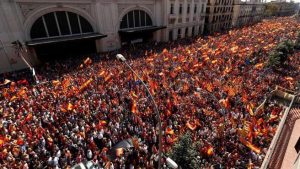 Digno de defensa de todos los catalanes por España, donde ya a primera hora de la mañana se han producido atascos de Renfe Rodalies y Ave. Con contrapartida, a la «no grata» despedida del Sr. Pablo Iglesias, en el aeropuerto, que ha sido el único hecho diferente al transcurso de la jornada. Manifestación organizada por Sociedad Civil Catalana con el apoyo de todas las organizaciones por la unidad, y secundada por el Partido Popular y Ciudadanos, como el PSC a título particular. Sin ideologías, ni eslóganes partidistas, se ha dado por finalizada la congregación con un acto con la lectura del manifiesto por parte del escritor, el Sr. Mario Vargas Llosa, premio Nobel de Literatura; y el expresidente del Parlamento Europeo, el Sr. Josep Borrell, en la estación de Francia.
