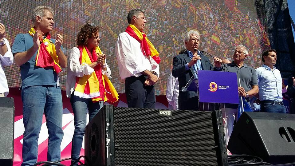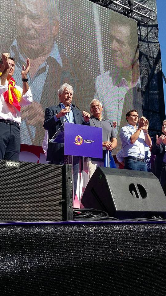 Digno de defensa de todos los catalanes por España, donde ya a primera hora de la mañana se han producido atascos de Renfe Rodalies y Ave. Con contrapartida, a la «no grata» despedida del Sr. Pablo Iglesias, en el aeropuerto, que ha sido el único hecho diferente al transcurso de la jornada. Manifestación organizada por Sociedad Civil Catalana con el apoyo de todas las organizaciones por la unidad, y secundada por el Partido Popular y Ciudadanos, como el PSC a título particular. Sin ideologías, ni eslóganes partidistas, se ha dado por finalizada la congregación con un acto con la lectura del manifiesto por parte del escritor, el Sr. Mario Vargas Llosa, premio Nobel de Literatura; y el expresidente del Parlamento Europeo, el Sr. Josep Borrell, en la estación de Francia.